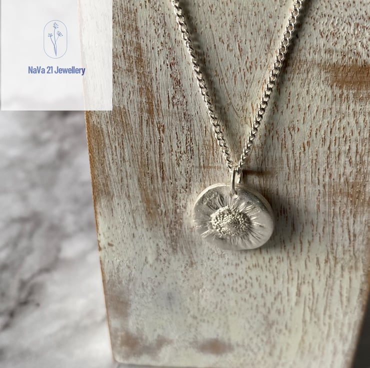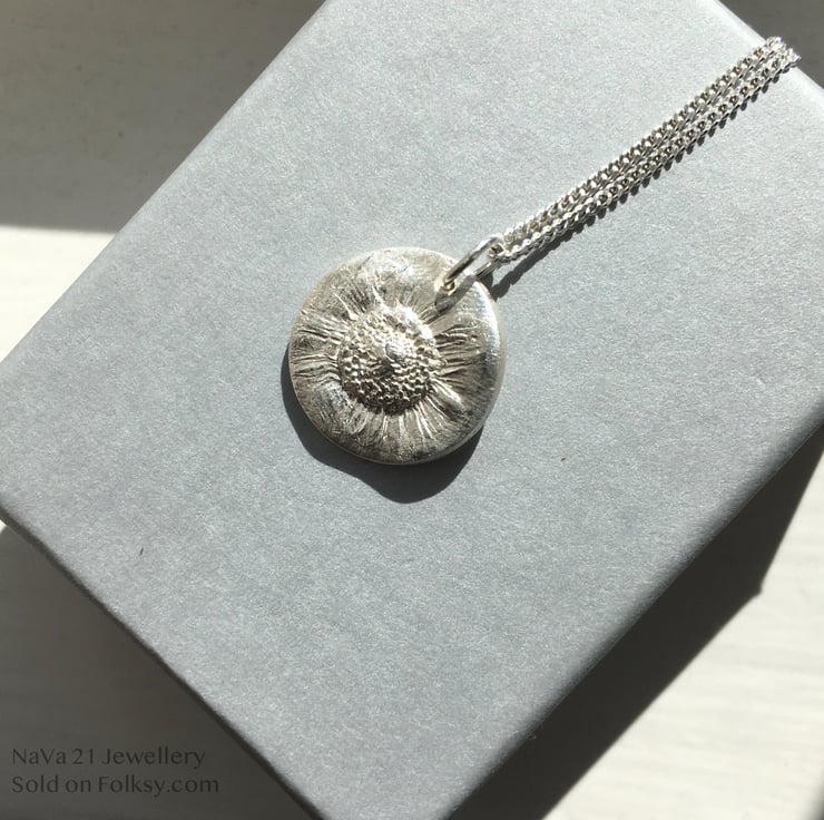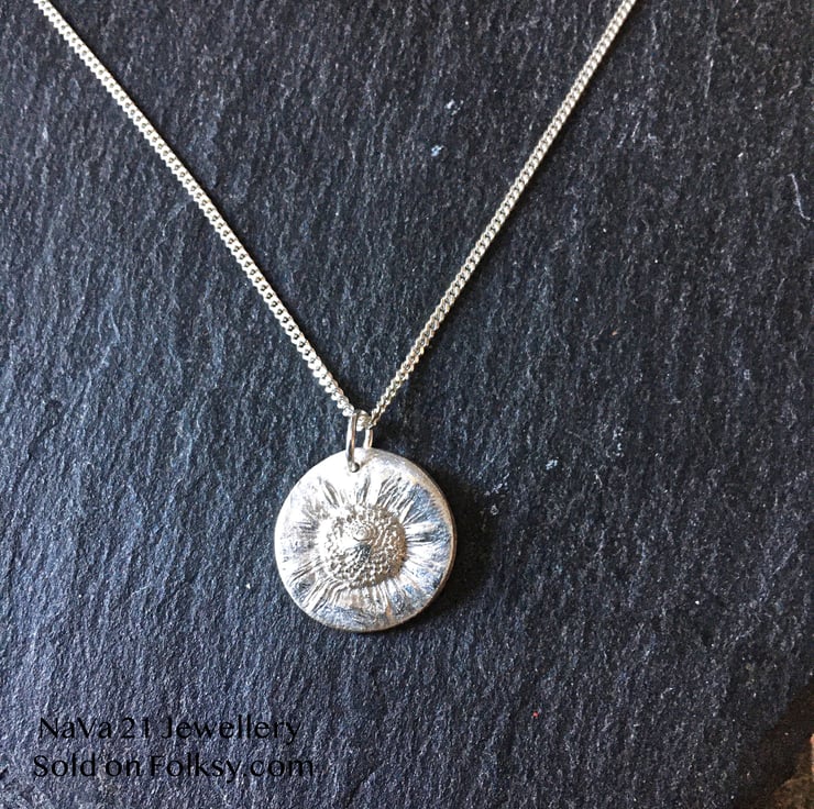 Dainty imprinted Daisy pendant.