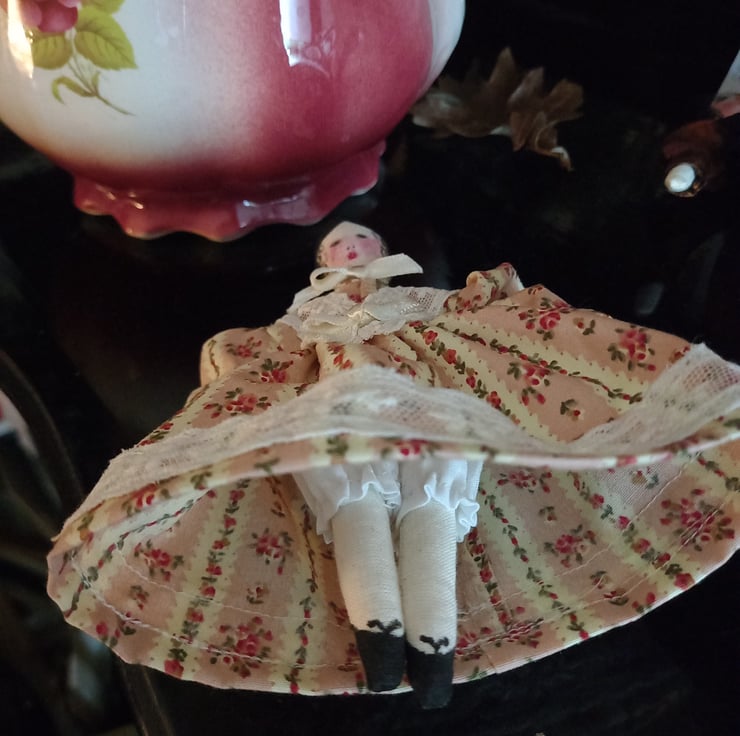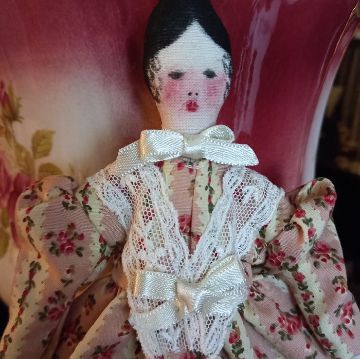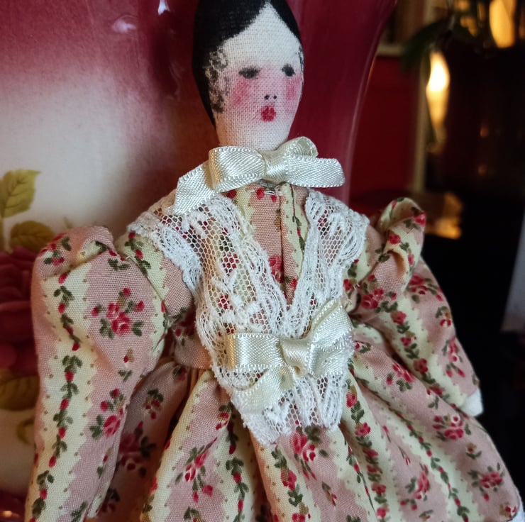Evangeline is a tiny and very sweet Victorian style ragdoll. She is made entirely by hand and contains a handful of lavender from my garden, perfect for an underwear drawer or as a gift for someone who loves Victorian pretties!