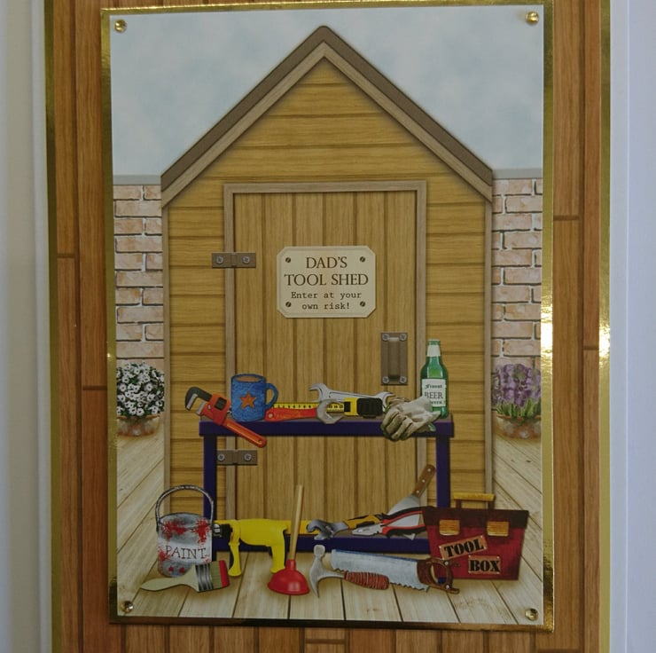 Happy Father's Day Card Dad's Tool Shed Enter at Own Risk 3D Luxury Handmade