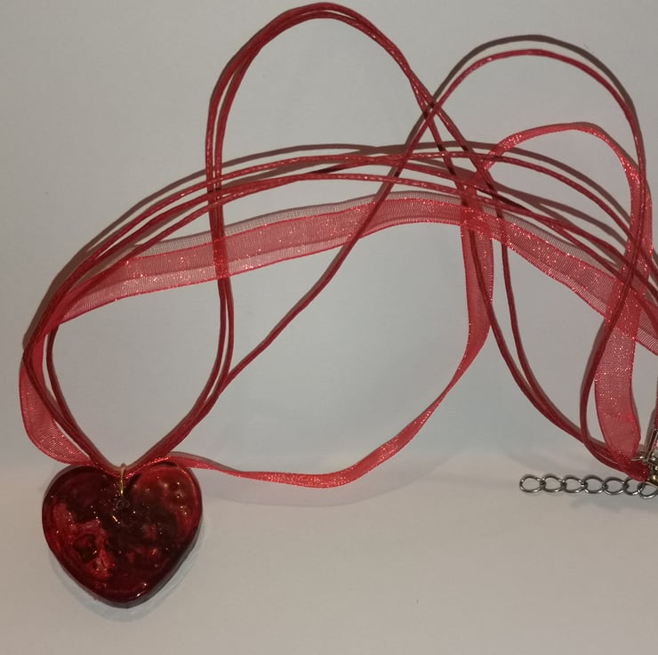 This is a resin heart with added red ink, I managed to create a bubble on the front of the heart as a window into a heart.