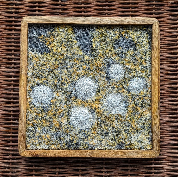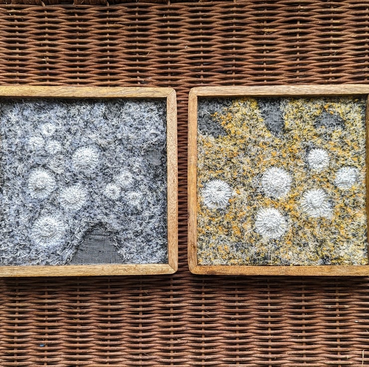 I create coastal inspired textures using a combination of embellishing and embroidery; blending a variety of recycled fabrics to create subtle variations in tone. These are stitched inside waste plastic to cast true to life pieces with cement giving a distinct contrast between the manmade structure of the packaging and the soft natural textures of the textiles.