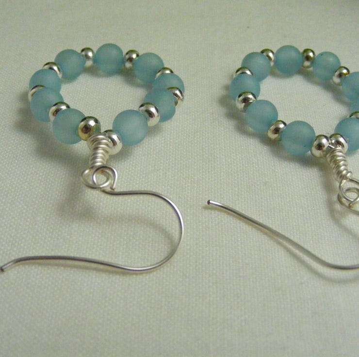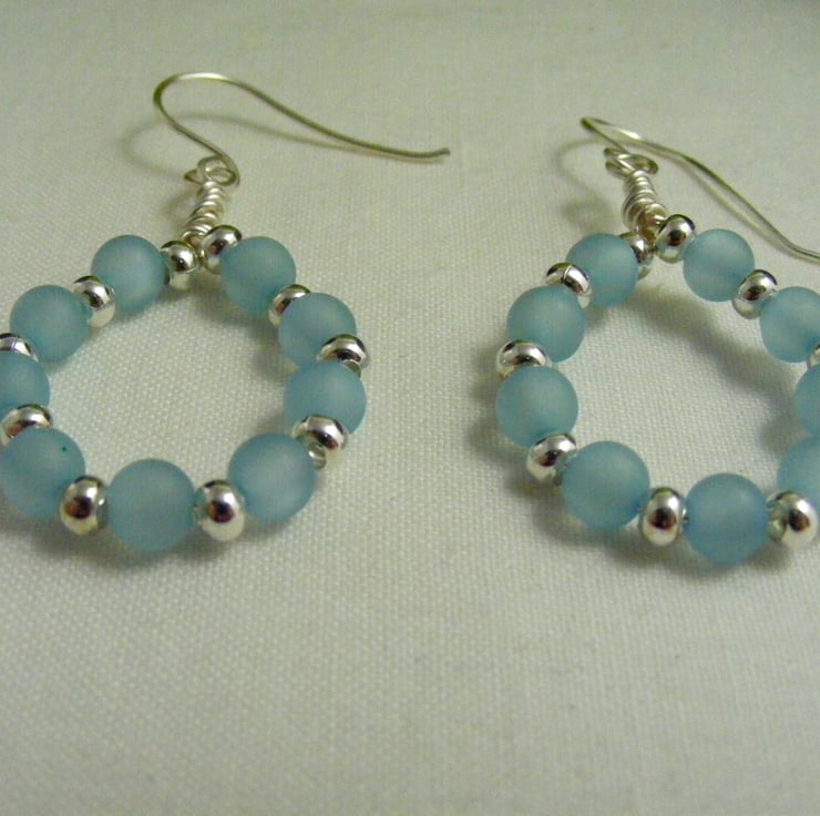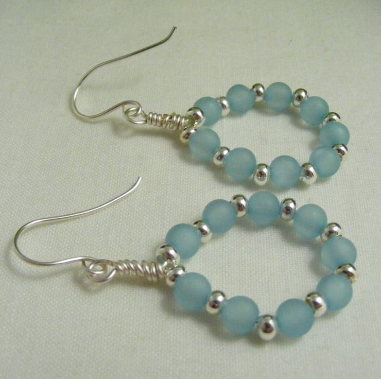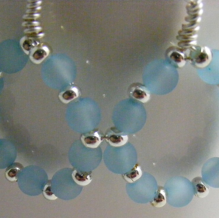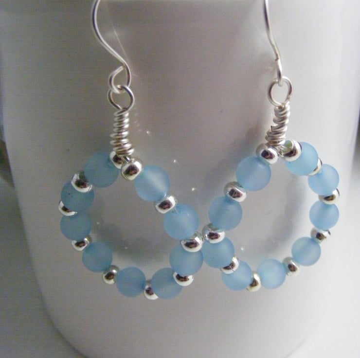 A lovely pair of hoop earrings handmade with, 6 mm pale blue polaris beads, 3 mm silver plated spacers and wire. Ear wires are handmade with hypo allergenic wire.