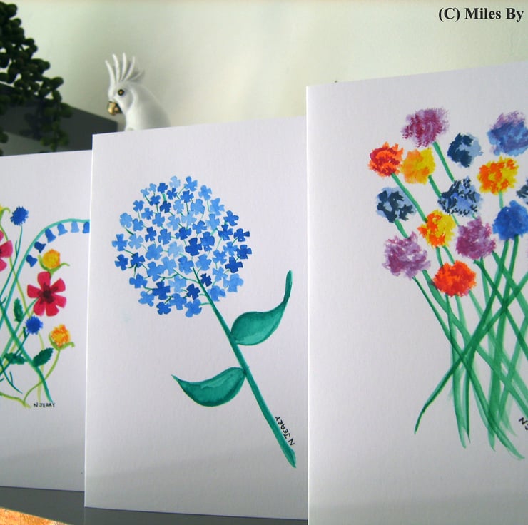 These three floral themed cards, have been hand painted in water colour paints by Natalie Jeary and are individually hand signed.
