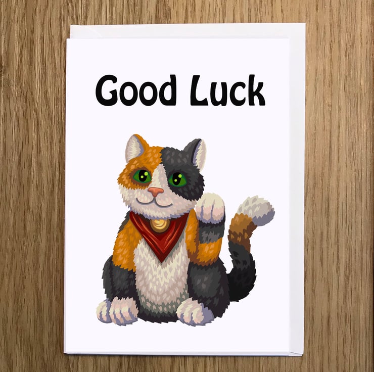 A cute lucky cat blank greeting card with white envelope by DuffleCat Prints (Damian Case)