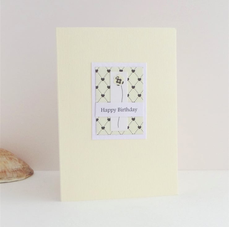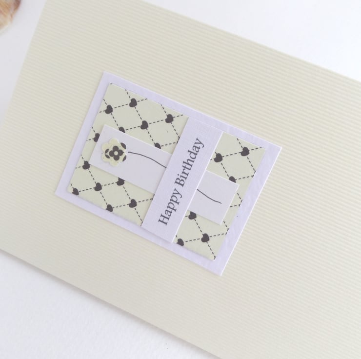 Simple Birthday Card, Ivory Flowers Says Happy Birthday.