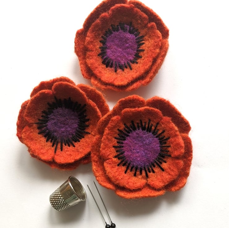 Each flower is made individually, so will vary slightly in size, shape and stitching