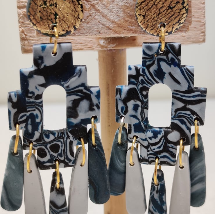 Hand made polymer clay earrings with an abstract pattern . Medium- Large sized. Stud fixing which can be painted with hypo allergenic coating for free on request. Please see all photos for close up detail. All products handmade therefore there may be minor imperfections. Each pair sold as seen, message for more info