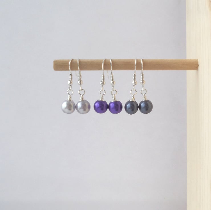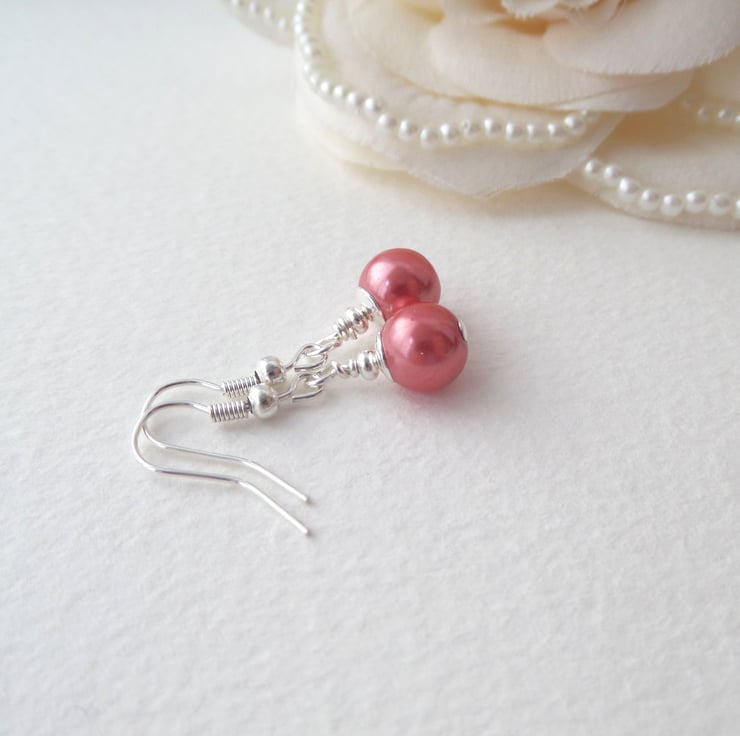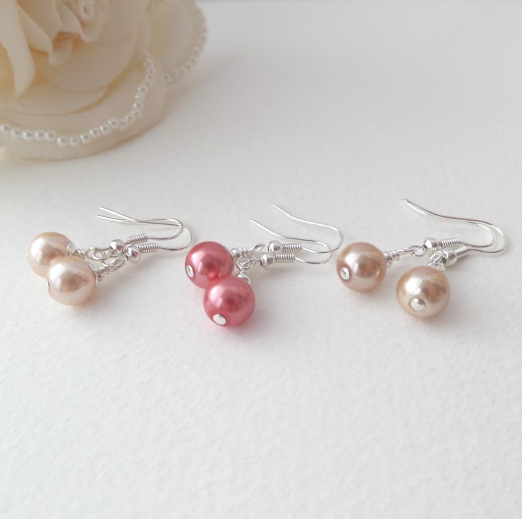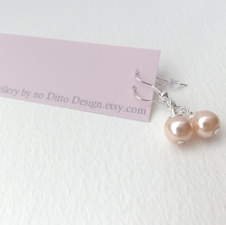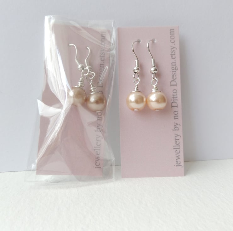 Chic 8mm pearls fitted onto silver plated fish hooks.