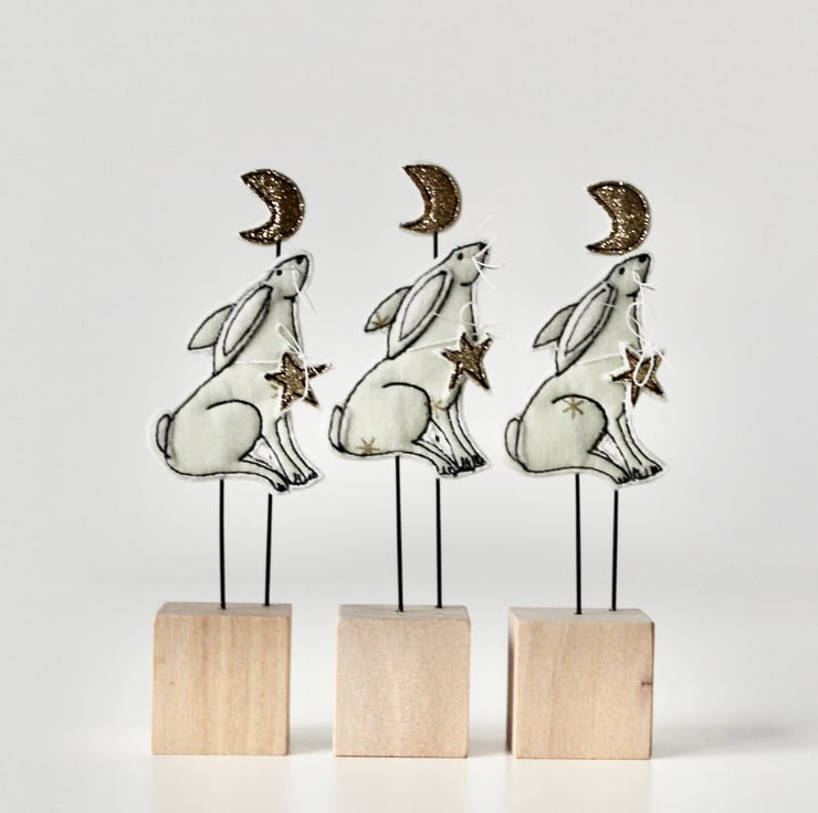 Due to the nature of each hare and moon being handmade, there will be slight differences in each, making each one unique. They will also differ slightly from the photographed one.