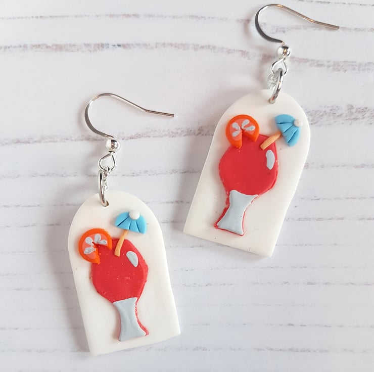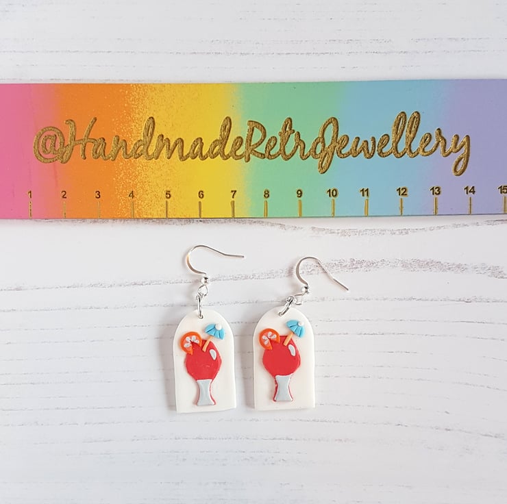 A pair of gorgeous bright cocktail themed earrings, perfect to brighten up any summer outfit! Complete with tiny umbrella and fruit slice too!