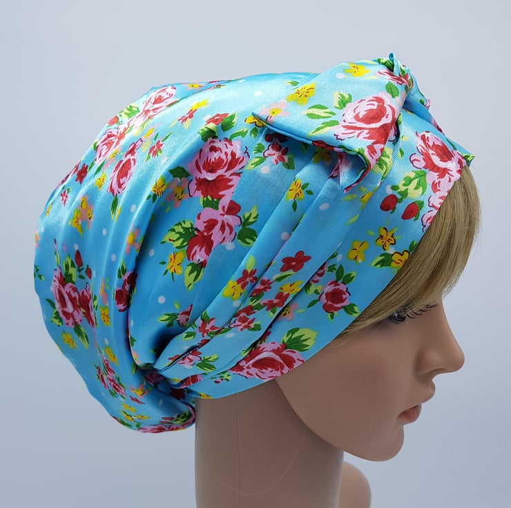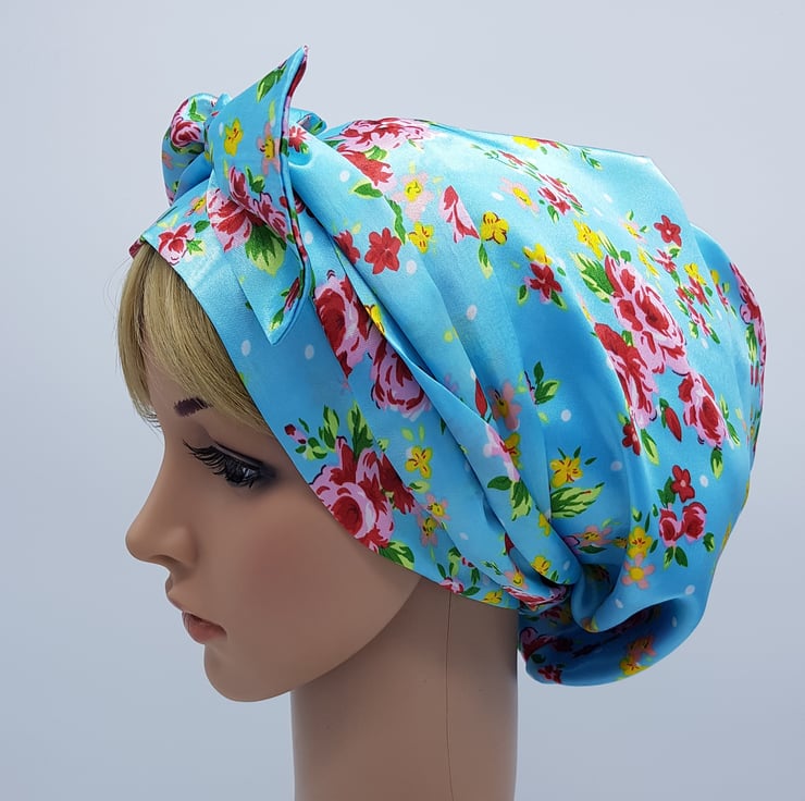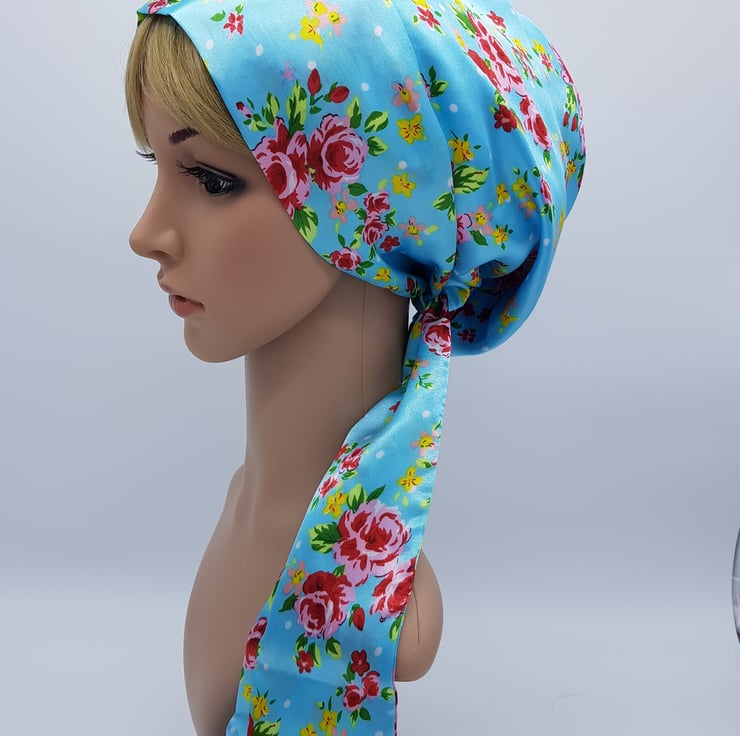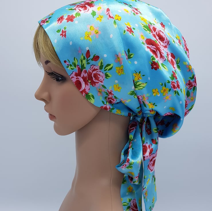 Hair covering for women, satin bonnet with long ties, tichel, head snood.