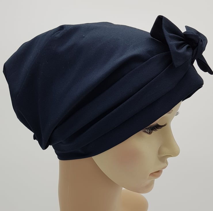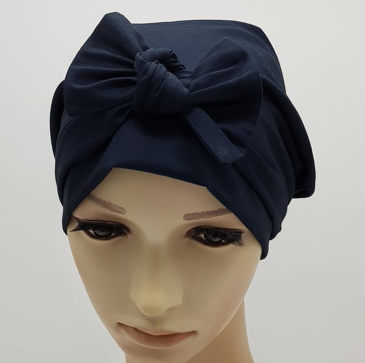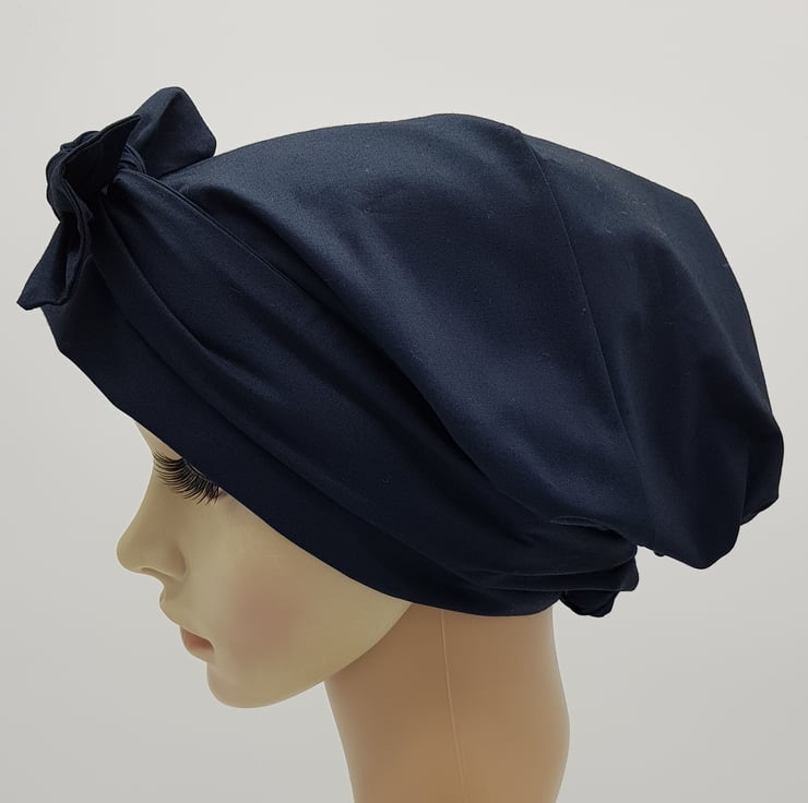 Navy blue cotton head wear for women, full head covering, tichel, head snood.