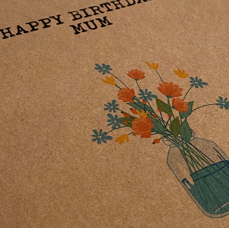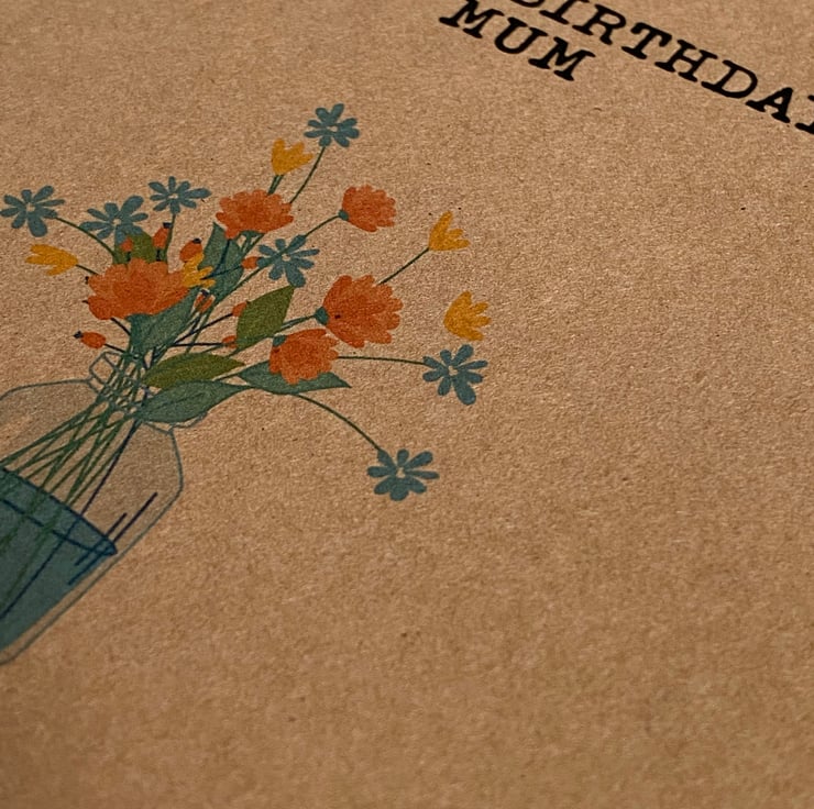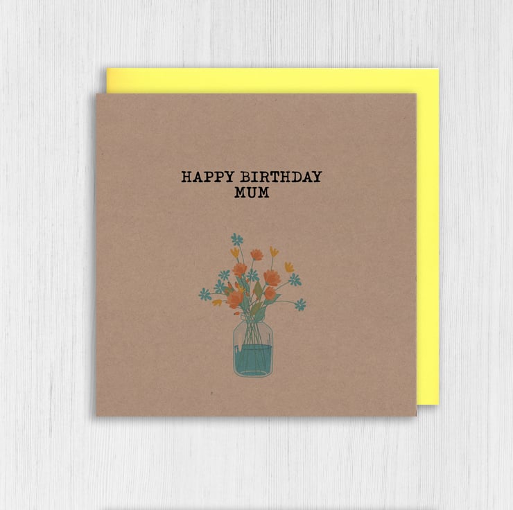 Mum, mom, mam, mother kraft birthday card: Flowers in vase