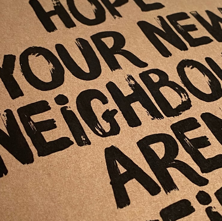 New home kraft card: Hope your new neighbours aren't weirdos