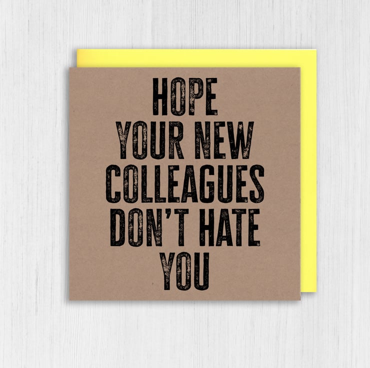 New job, good luck, leaving, goodbye kraft card: Hope your new colleagues don't hate you