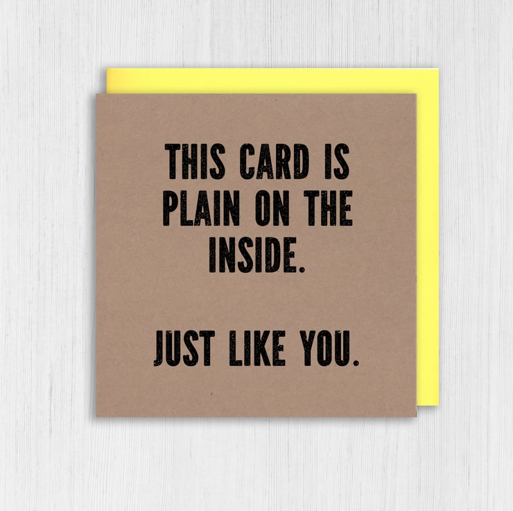 Rude, offensive birthday kraft card: This card is plain on the inside just like you