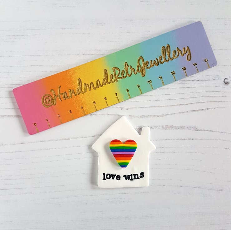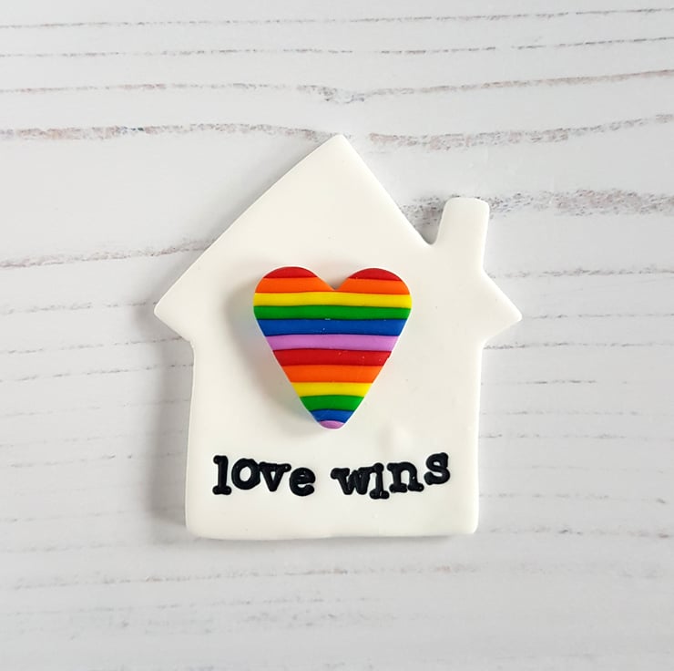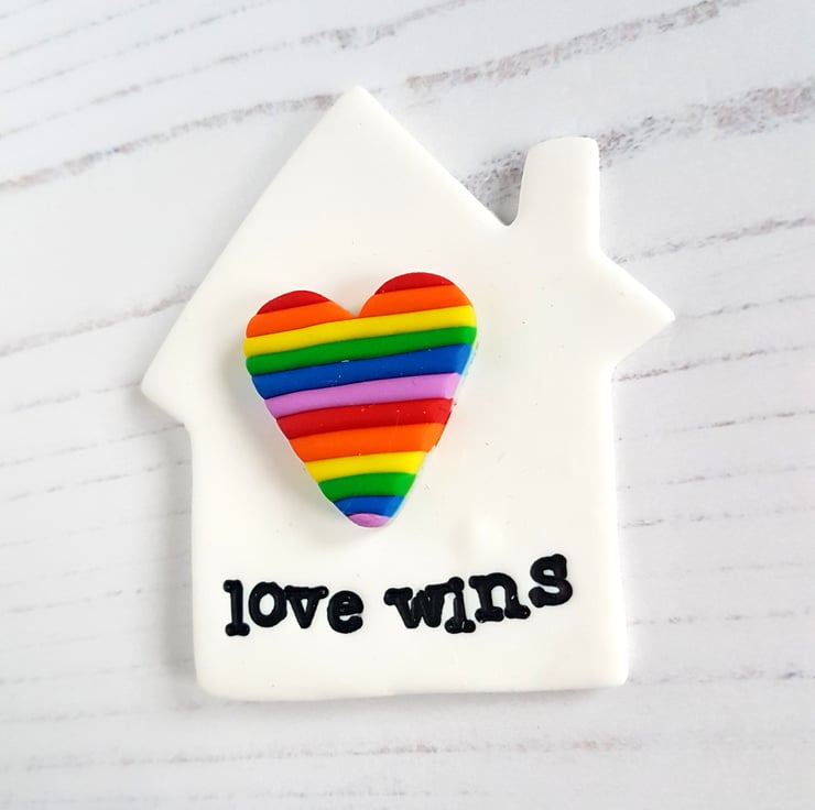 The 'Love Wins' house features a heart in the centre made up of rows of rainbow colours of clay