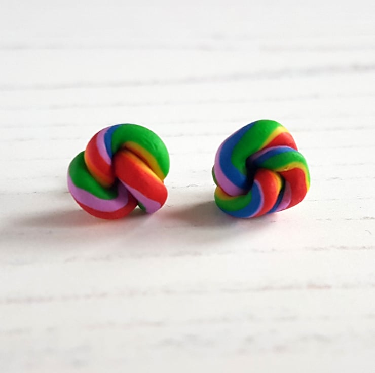 The knot studs have had the rainbow colours swirled round, then knotted to make the shape.