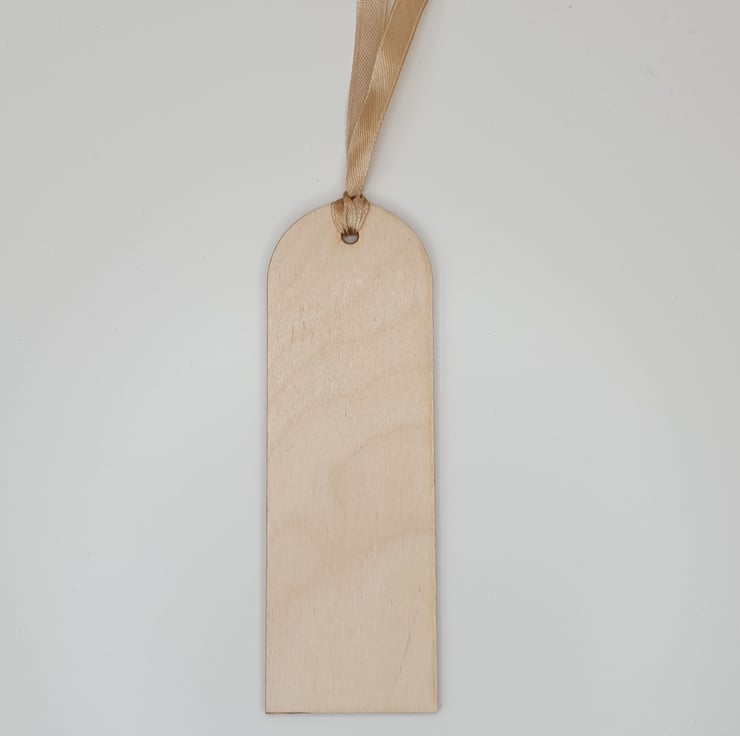 Size of wooden bookmark 15 cm x 5 cm x 0.3 cm approx