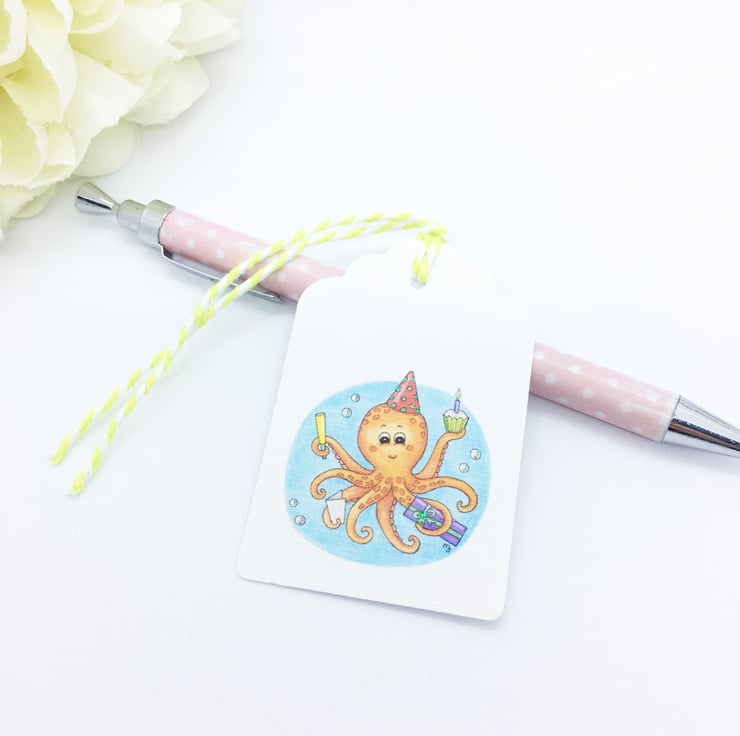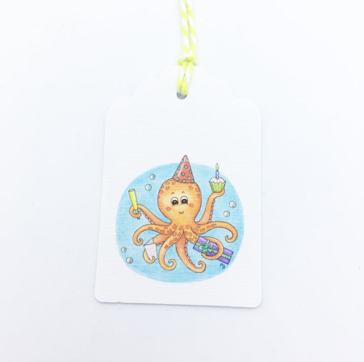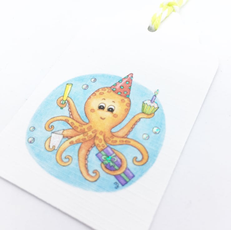 Party Octopus Gift Tags - set of 4 tags