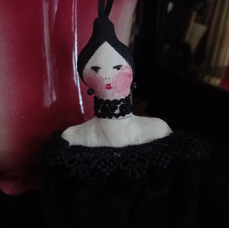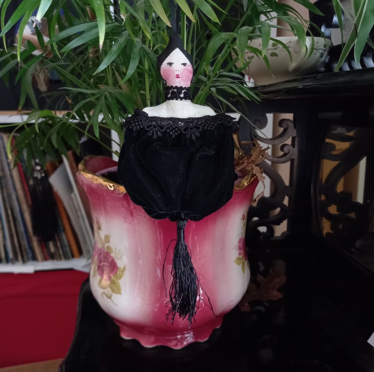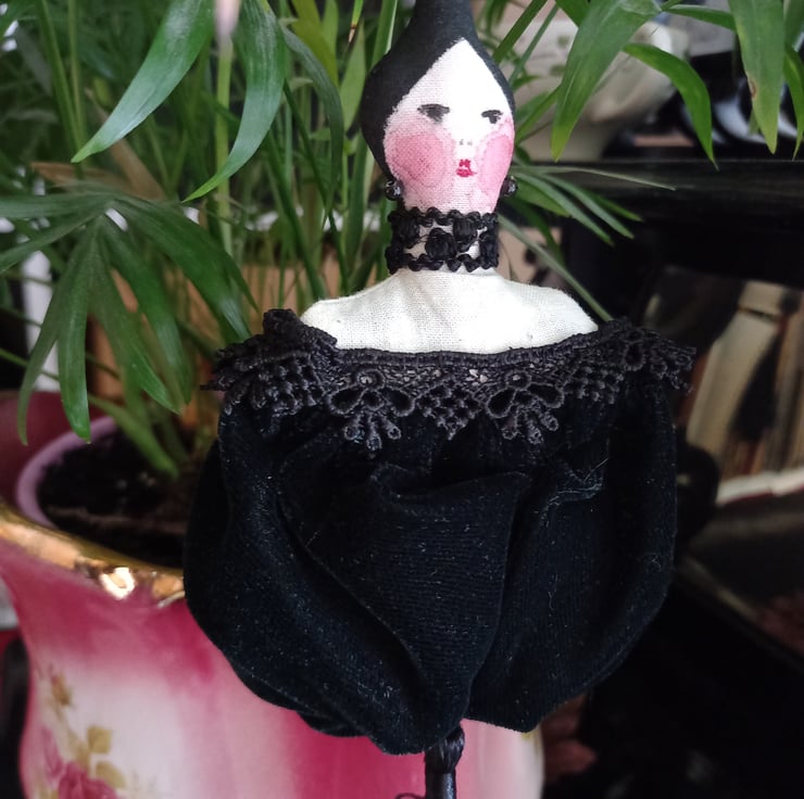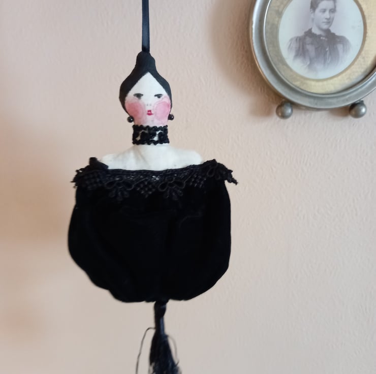 Alexandra is an unusual hand made lavender bag measuring around 7" from head to end of the tassel. Alexandra's face is hand painted and her green velvet dress pouch is filled with lavender from my garden - a very unusual item perfect for anyone who loves Victorian pretties!