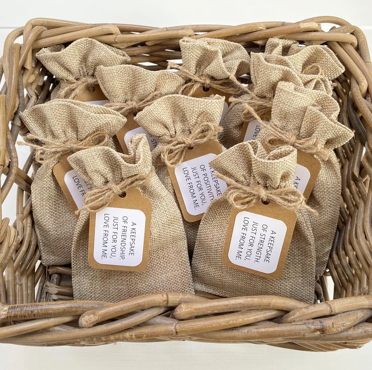 The drawstring hessian bag measures 15cm x 10cm. You will receive ONE keepsake bag of quotes. Tissue paper colour may differ from pictured.