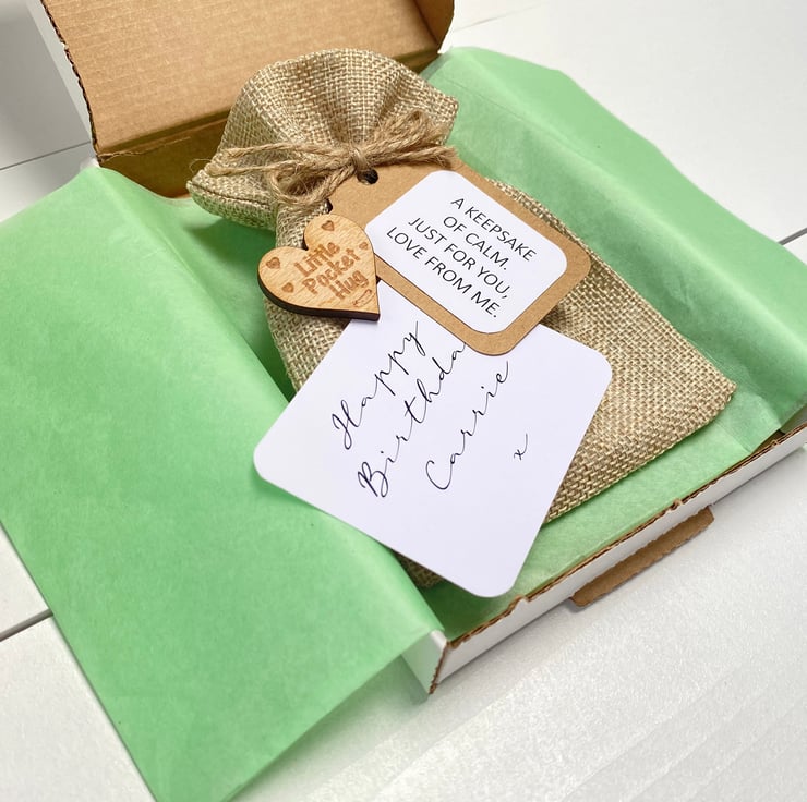 - A wooden 'little pocket hug' heart shaped token.
