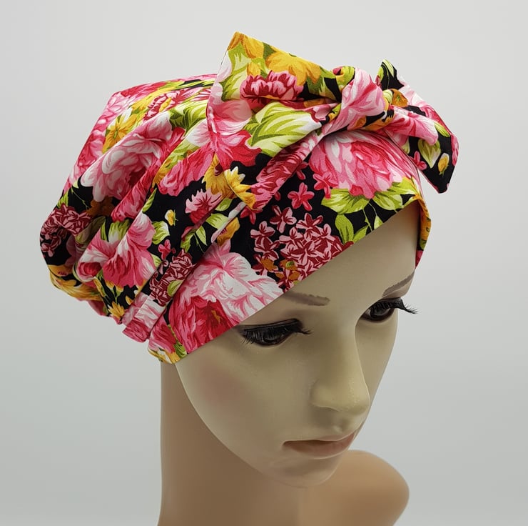 Women's hair cover, reversible elasticated cotton head wear, full head covering .