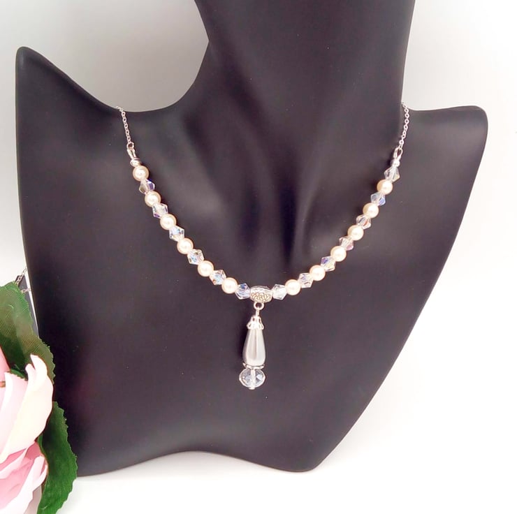 This stunning glass pearl and crystal neclace would perfectly complement any dress or outfit that you choose for any special occasion or for a party. It would also make an ideal gift for your friends or relatives a for a birthday or anniversary, or a lovely treat for yourself.