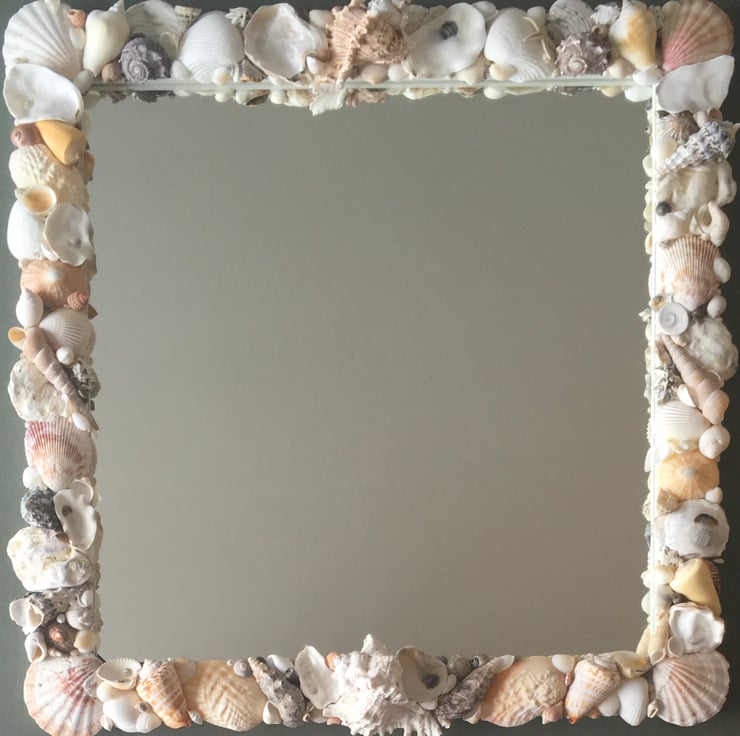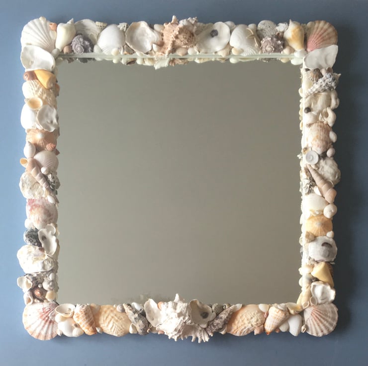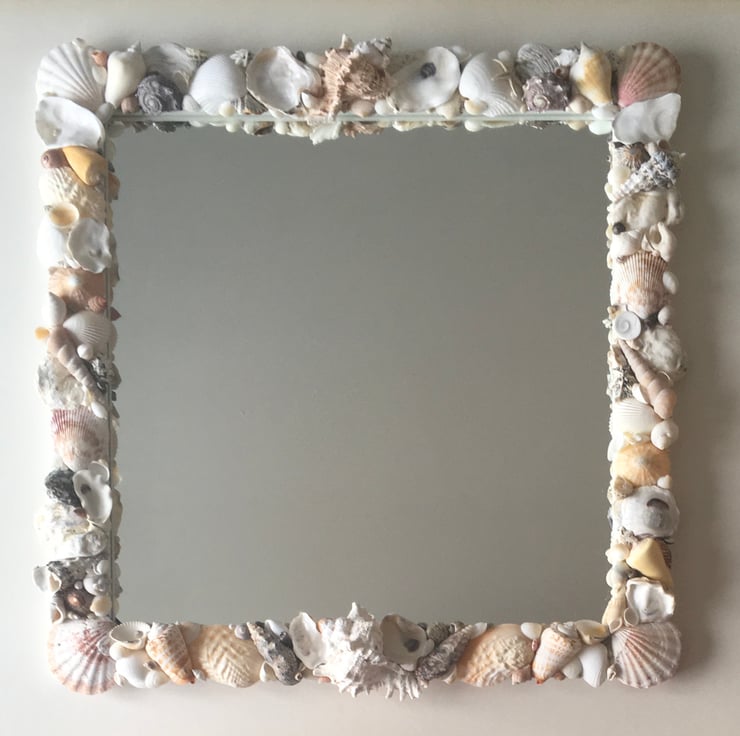 Unique and individually made handcrafted natural seashell mirror