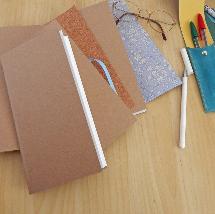 - The notebook has covers of stiff brown kraft card