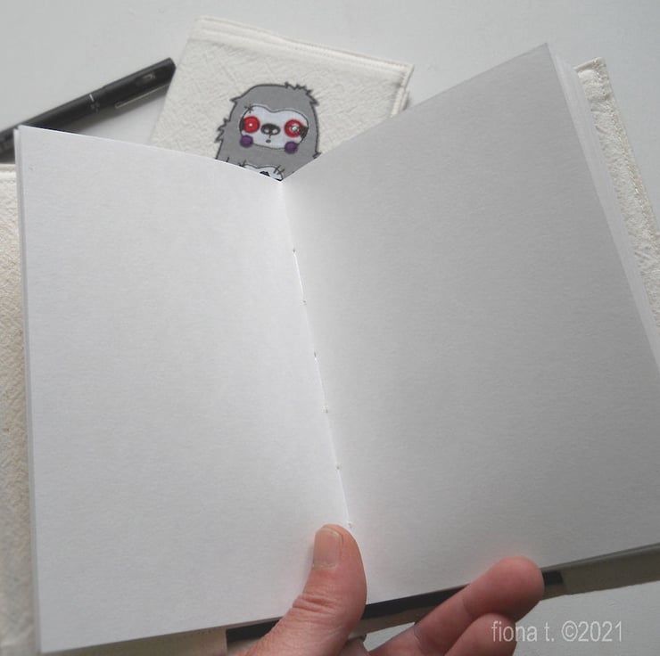 it's entirely cut, stitched and handmade , with care, by me, ensuring each notebook cover is unique, well made and securely constructed.