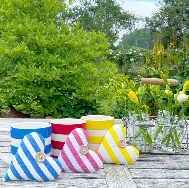 So many stunning kitchen dressers spotted on Instagram - often with pretty hearts on the drawer handles or nestled amongst the mugs and plates. My own big wooden dresser is home to my much loved stripey pottery - and this stripey heart has been designed to complement those Cornishware stripes.