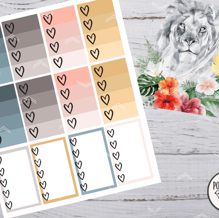 - Decorative shapes including hearts and washi