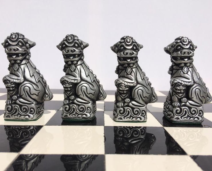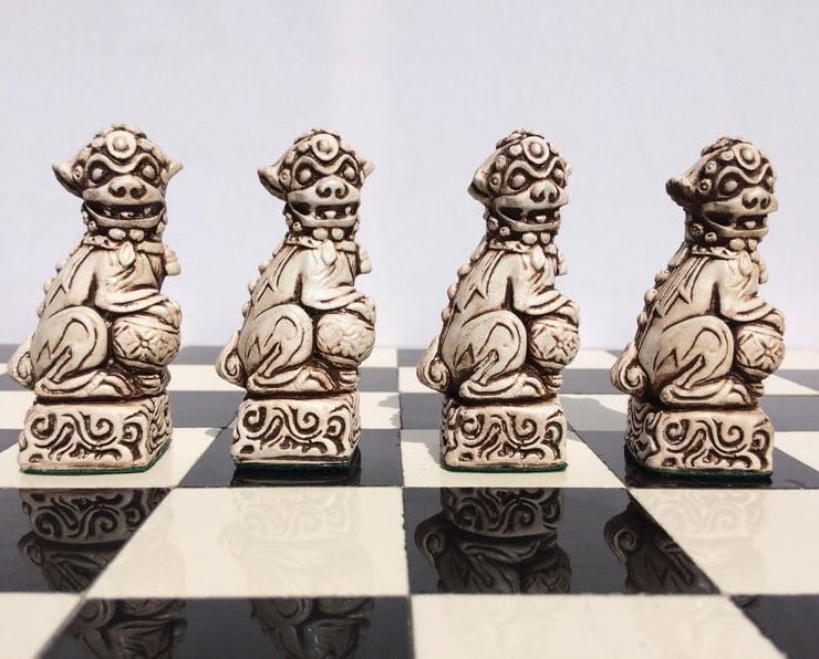 The intricate design of these lavish chess pieces is typical of the artistry of Asia and are both beautiful to look at and a joy to play with.