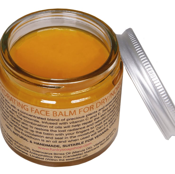 Indulge your skin with a concentrated blend of precious plants and essential oils of Sea-buckthorn, Marula and Shea and Chamomile. Infused with vitamin C and E, Sea-buckthorn will nourish, heal and protect the skin. The combination of oils will help repair the skin barrier from sun damage and rebalance dehydrated skin to restore the lost radiance and rebuild collagen for a more youthful appearance. Gently heat up the balm with your fingers to melt and burst the small particles of oil to deeply penetrate circulation and seal in the moisture. Can be applied alone or before your moisturiser. Sea-buckthorn is an oil and when used will leave a slight orange residue.