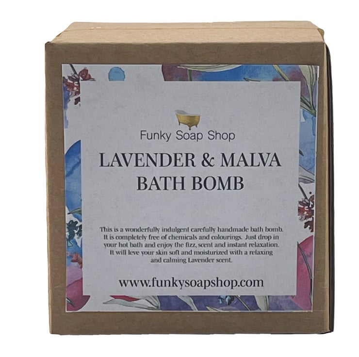 This is a wonderfully indulgent carefully handmade bath bomb. It is completely free of chemicals and colourings. Just drop in your hot bath and enjoy the fizz, scent and instant relaxation. It will leave your skin soft and moisturized with a relaxing and calming Lavender scent.