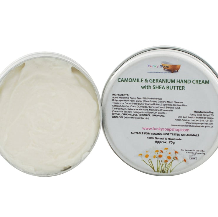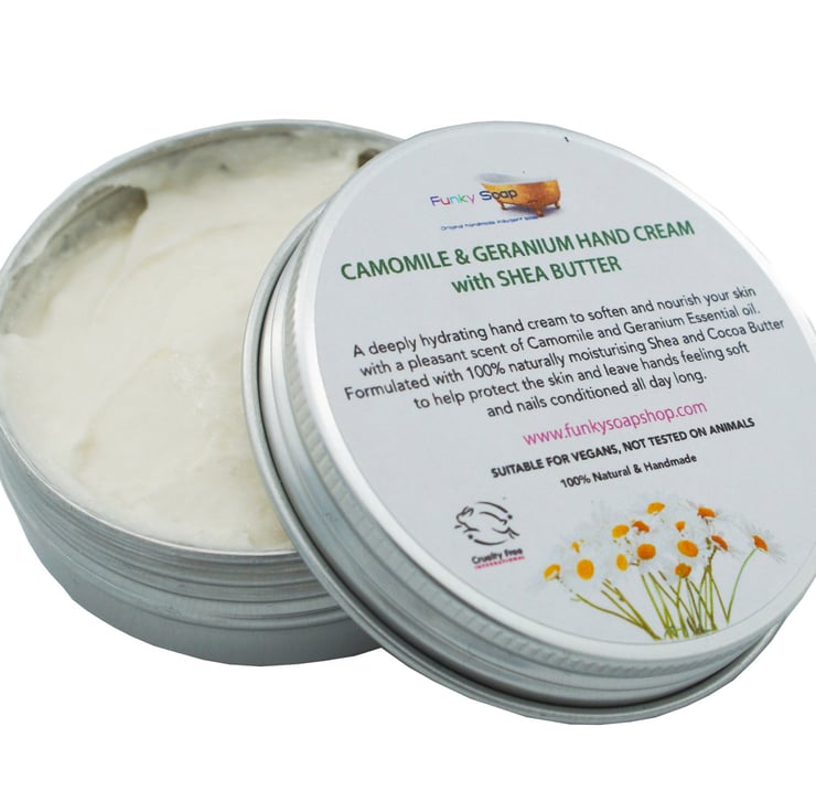 A deeply hydrating hand cream to soften and nourish your hands with a pleasant scent of Camomile and Geranium Essential Oil. Formulated with 100% naturally moisturising Shea and Cocoa Butter to help protect the skin and leave your Hans feeling soft and nails conditioned all day long. In a compact aluminium tin easy to carry in your bag.