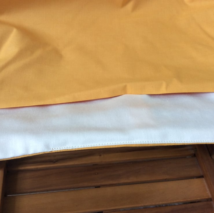 Inside is lined and neat, on the back it is self lined and on the front I’ve used cream lining. So inside the cover you can’t see any stitching.