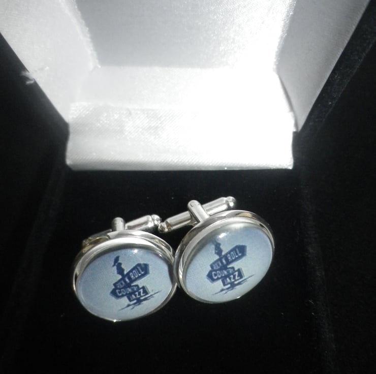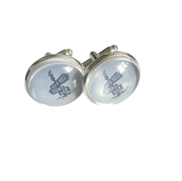Music Signpost cufflinks,free shipping, gift wrapped, terrific image, Ref 1234