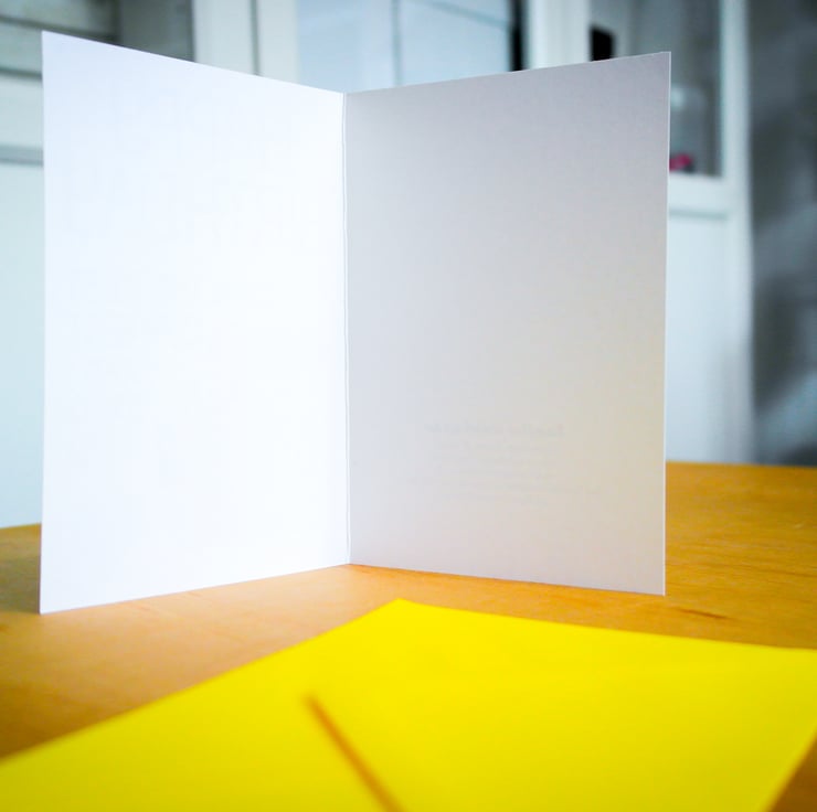 Each of our printed range of cards are hand drawn and designed on a drawing tablet and then printed on to high quality 255 GSM card stock from our UK suppliers who use responsibly managed forestry sources. Each Card is handmade (designed, printed, cut, creased, folded) and packaged by us in our little studio in Stamford, in the UK