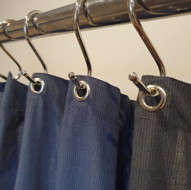 It all started with my old, worn out shower curtain ... but trying to find one that was plastic-free was a struggle ... finally I managed to source some, but the cost was so extravagant (£90 upwards was beyond my purse strings!!). So I decided to face the challenge head-on ... and, to cut a long story about research, prototypes, Trading Standards meetings and a lots of testing; the Organic Shower Curtain Company was born.