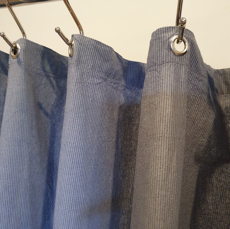 not quite 50 shades ... just the 2!!! ... beautiful grey striped organic cotton shower curtain ... but with added colour 'texture, a blip in the dye process, see photo.