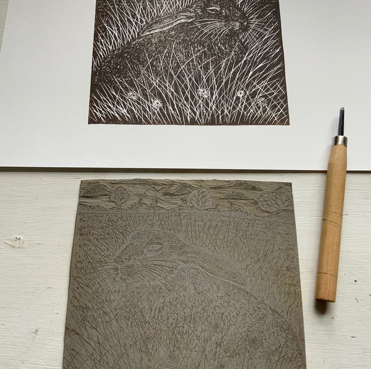 Hand printed in my home studio in Yorkshire, using a rich dark chestnut brown relief printing ink, onto Fabriano archival and acid free 50% cotton printmaking paper.