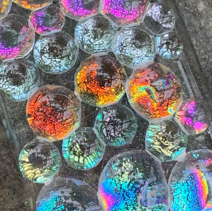 Inspired by rainbows and the beauty of dichroic glass.