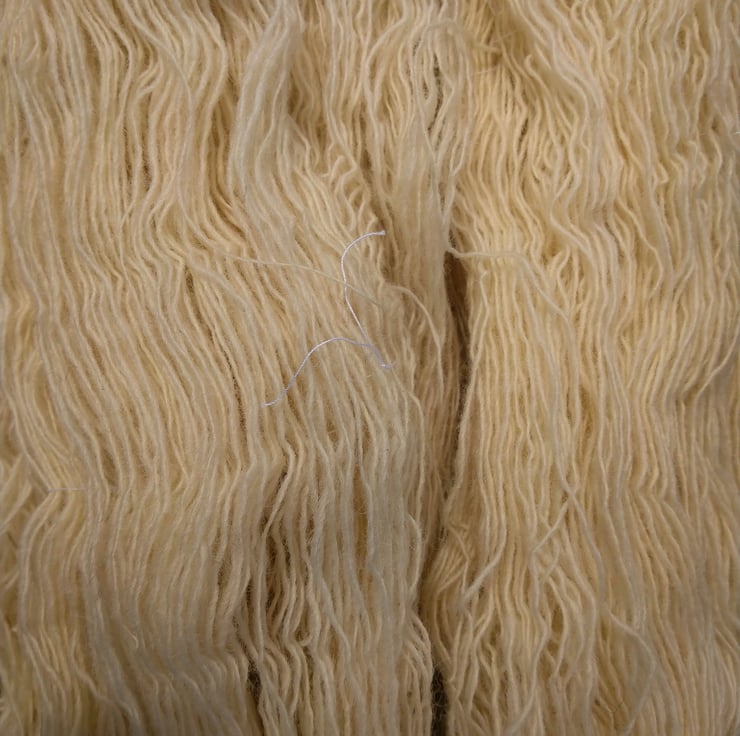 The yarn is woollen spun, but spun to make it suitable for weave.