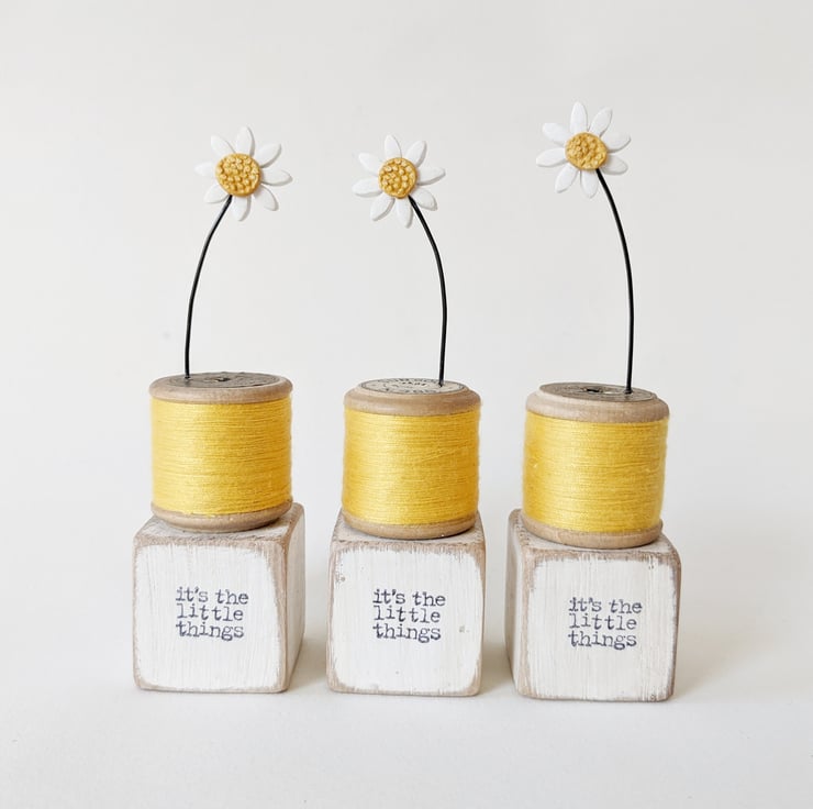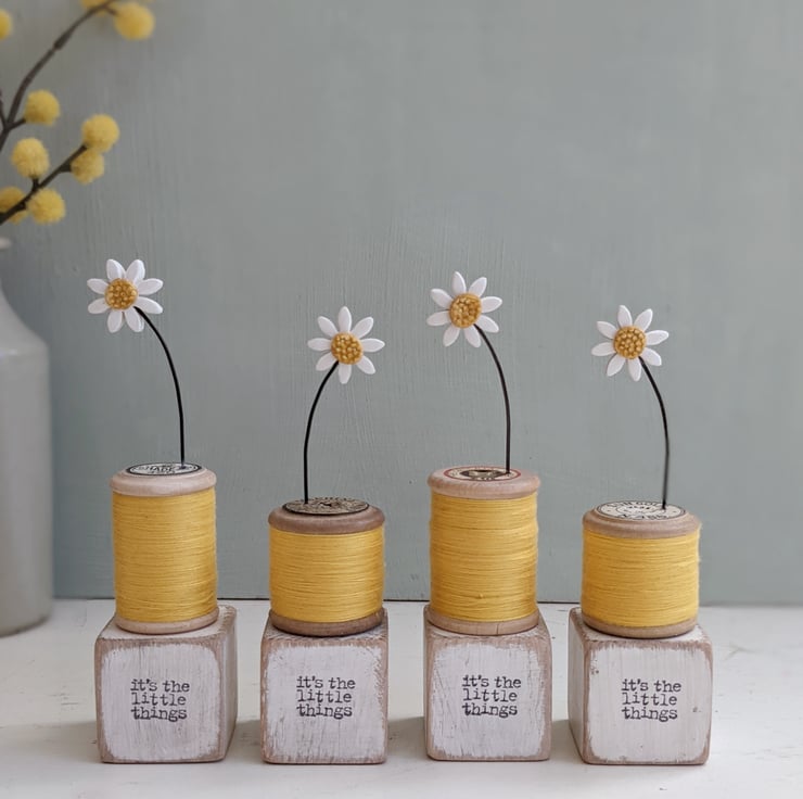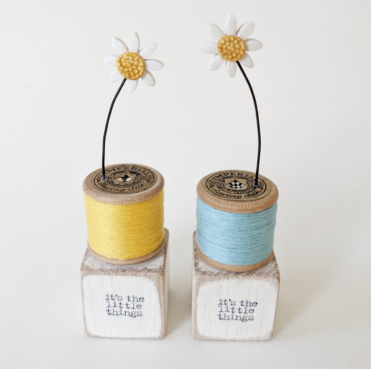 Clay Daisy on a Teeny Vintage Bobbin 'it's the little things'