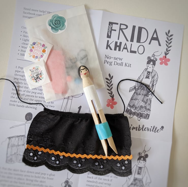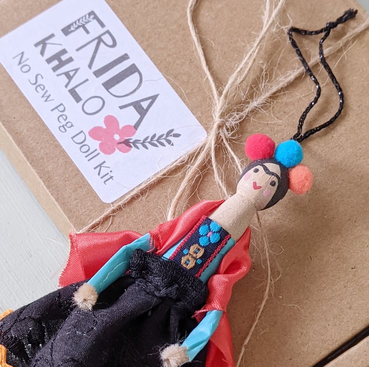 I love making these peg doll kits, and Frida Khalo is one of my favourite artists and inspirations! I've carefully crafted and sourced all the bits you need, and hand painted Frida ready for dressing!