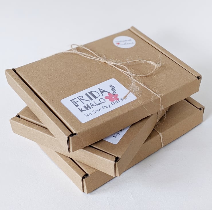 Presented in a string tied box with full written and illustrated instructions, a printed note with a Frida Khalo quote, and some fun stickers.