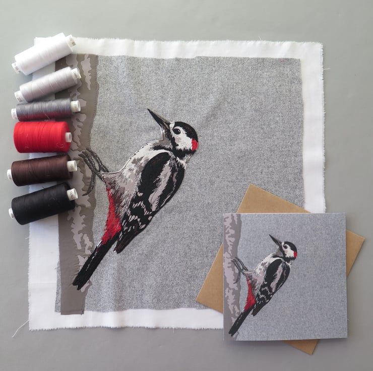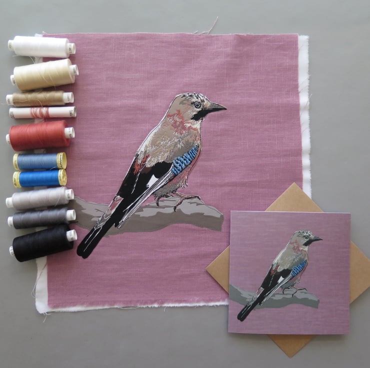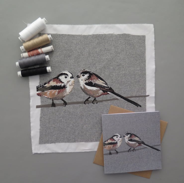Original fabric appliqué designs which have been scanned, and then printed onto recycled card.